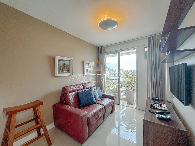 •Sala de estar integrada à varanda fechada, criando um espaço contínuo e versátil para receber convidados.
