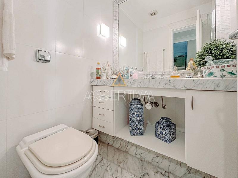 Sala em três ambientes piso em porcelanato, lavabo, adega, copa cozinha planejada, despensa, sala de almoço, lavanderia e dependência completa.