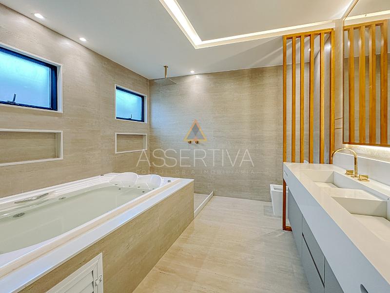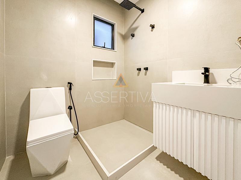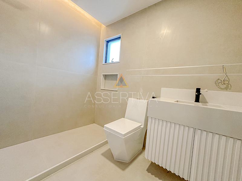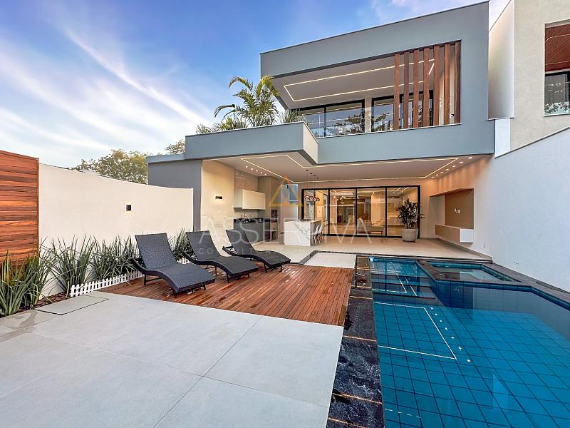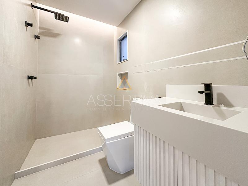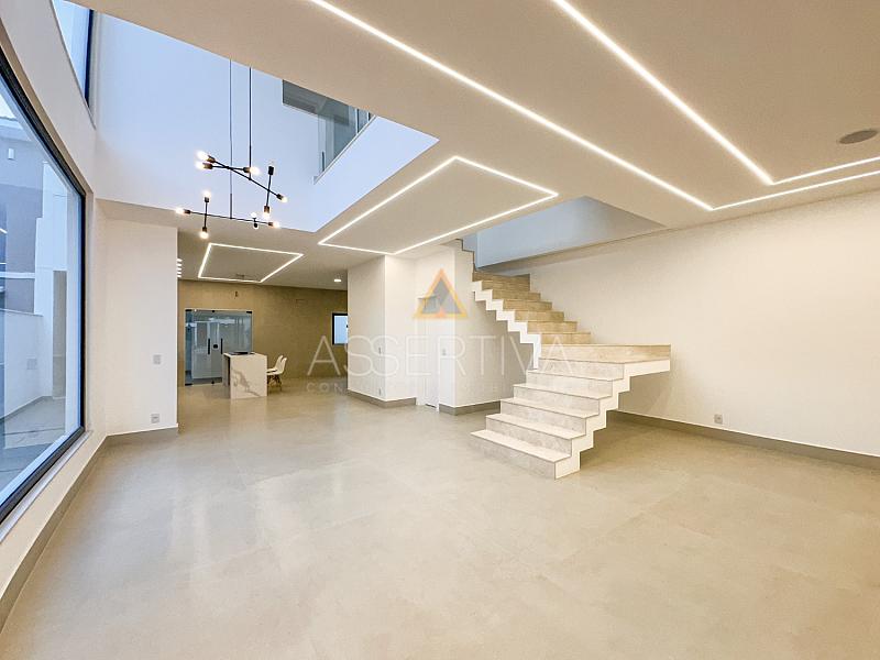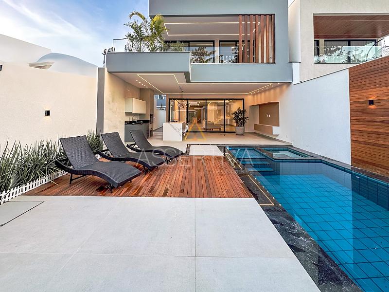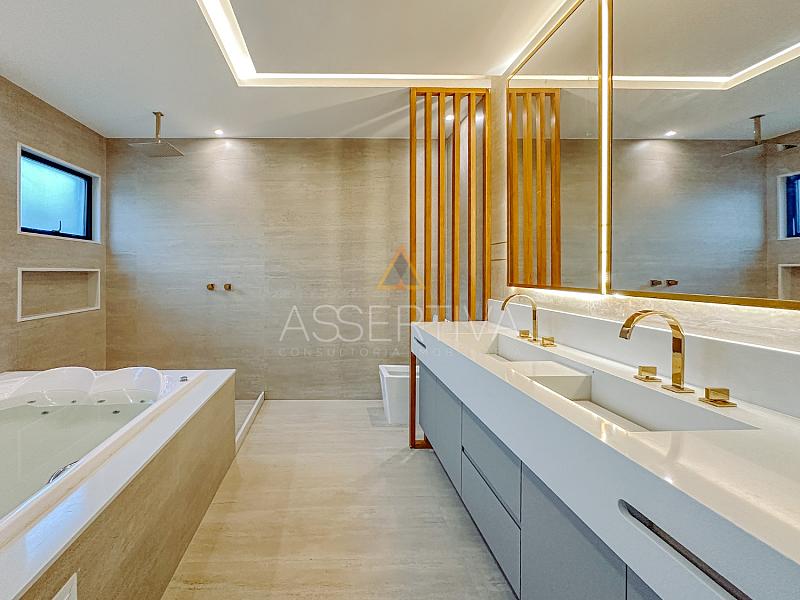 Com 450m² de área construída, o projeto contemporâneo impressiona em cada detalhe. São 4 suítes, todas com closet, garantindo espaço e privacidade. Há também a possibilidade de suíte térrea, ideal para quem busca acessibilidade ou versatilidade nos ambientes.