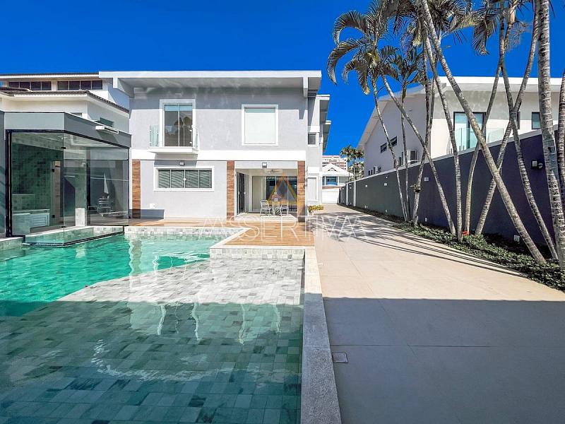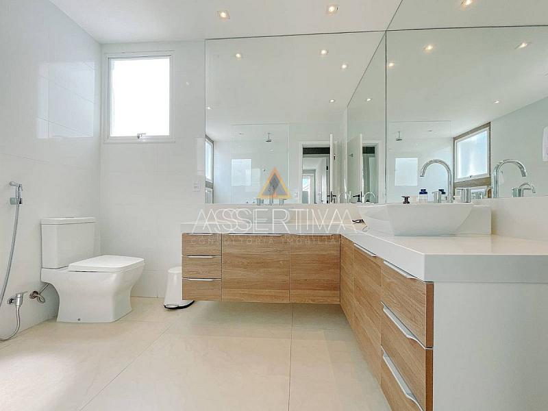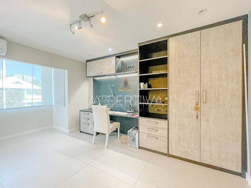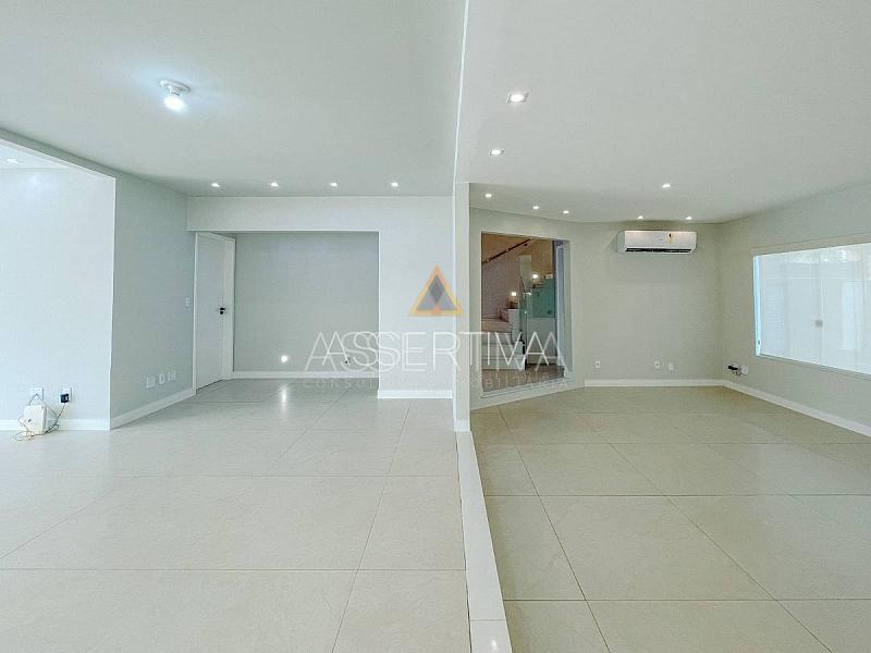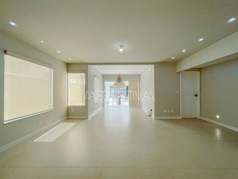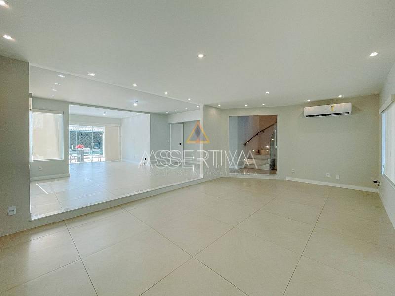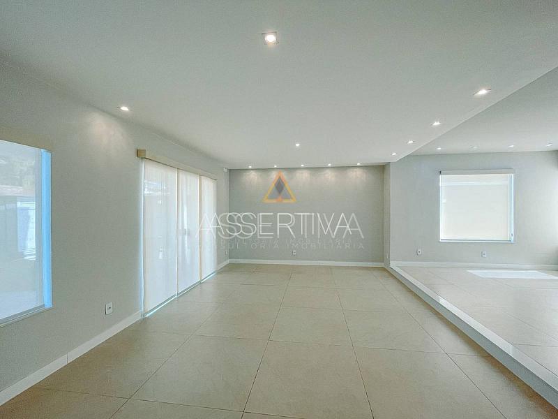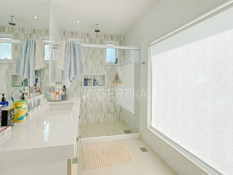 Esta magnífica casa duplex em condomínio fechado na Barra da Tijuca oferece segurança total 24 horas e todas as comodidades para uma vida confortável e luxuosa.