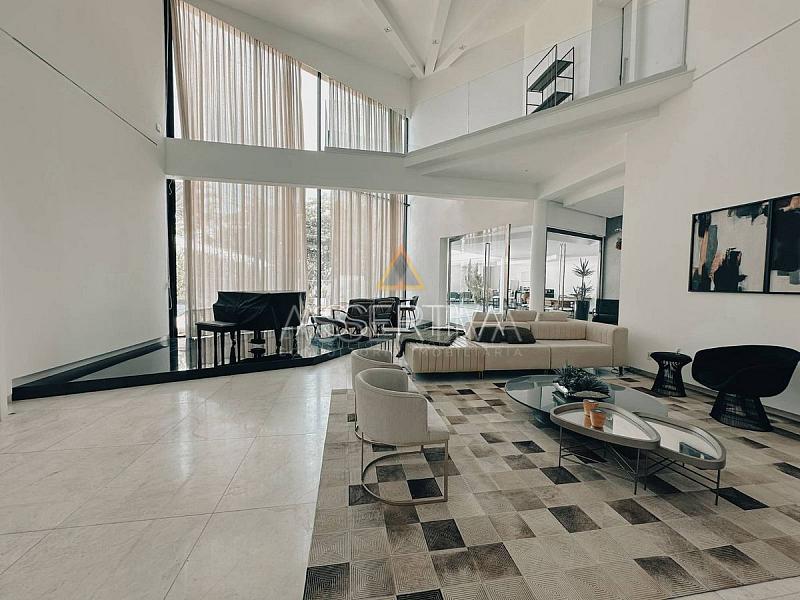•Sala com Pé Direito Duplo: Amplitude e sofisticação em um ambiente que combina elegância e iluminação natural.