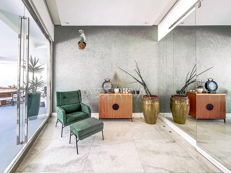 •Cozinha Gourmet com Ilha: Totalmente equipada, com cooktop e eletrodomésticos de alto padrão.