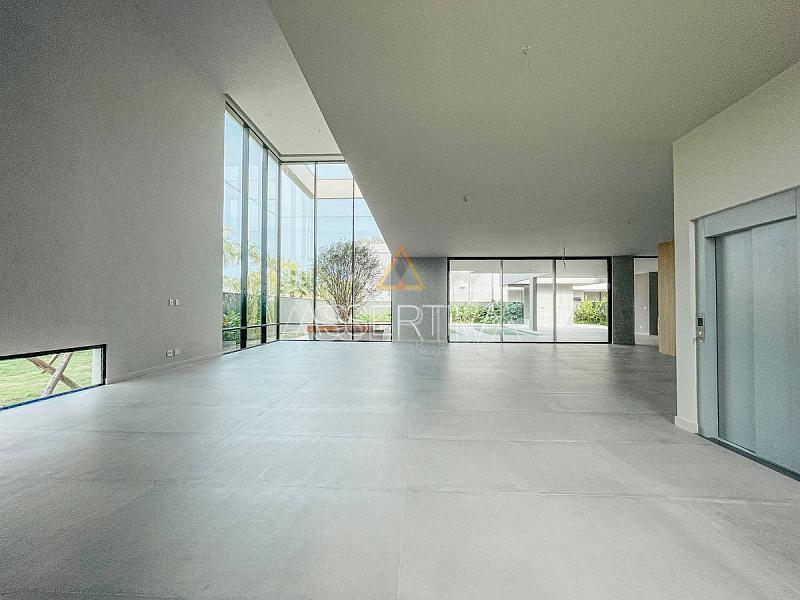 O terreno de esquina, em posição privilegiada, envolve 933 m². No primeiro pavimento, somos recebidos por uma suíte transformada em escritório, um salão em três ambientes, um envolvente jardim de inverno, uma adega, e um lavabo finamente acabado. A copa-cozinha, com uma ilha que é o coração da casa, promete experiências culinárias inigualáveis. Além disso, encontramos uma área de serviço e dependência completa de empregada. A praticidade é elevada a outro patamar com um elevador que percorre todos os níveis da residência.