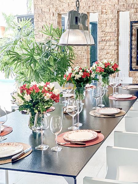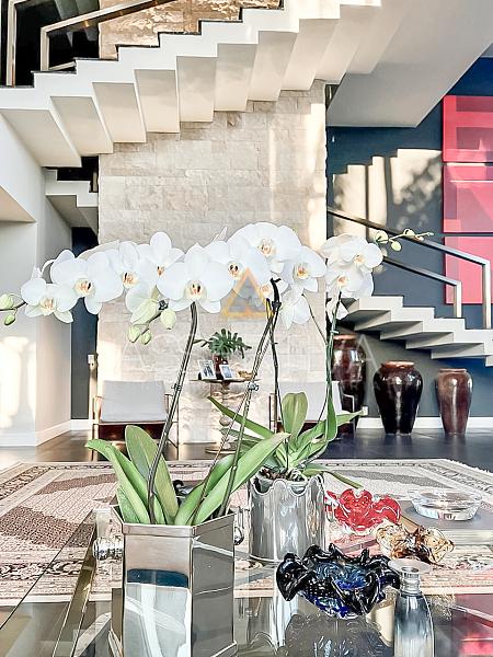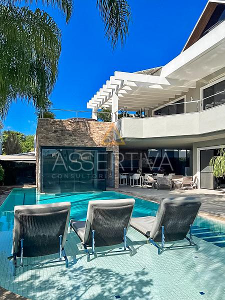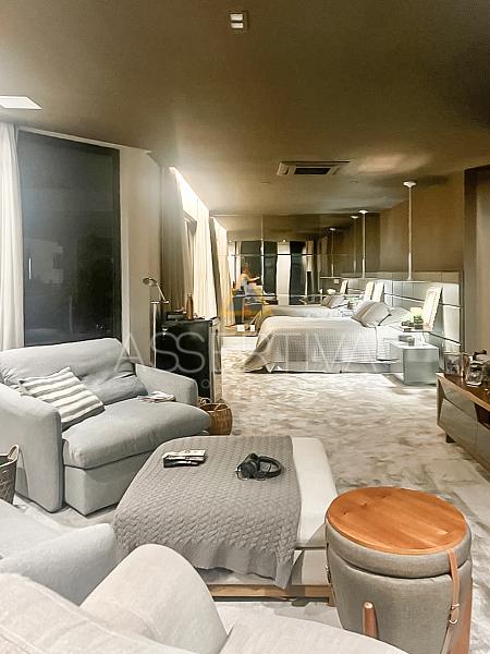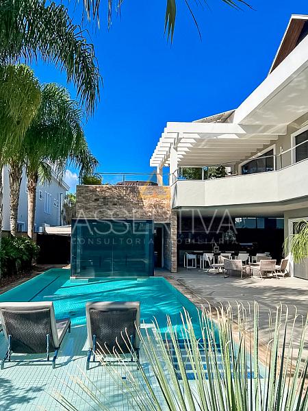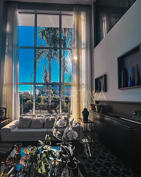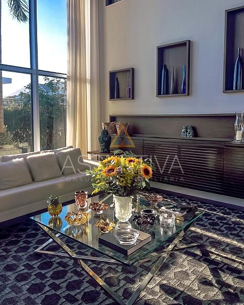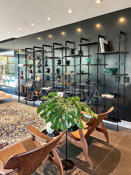 Com 829 m² de área construída em terreno de 900 m², esta residência impressiona desde a fachada até os mínimos detalhes do interior. Totalmente mobiliada, conta com móveis planejados e peças assinadas, marcenaria de altíssimo padrão e um design que valoriza amplitude e integração.