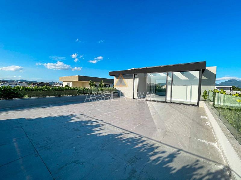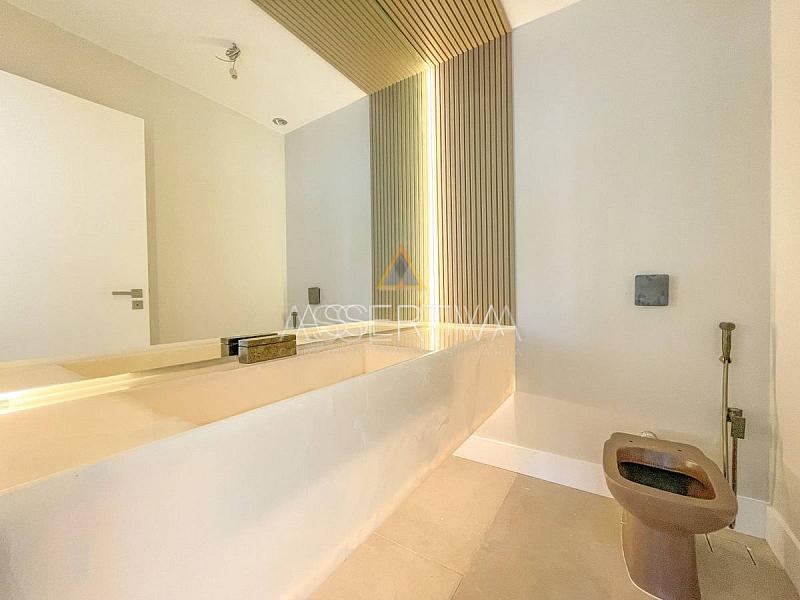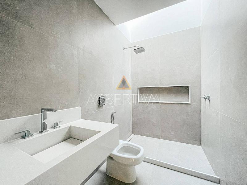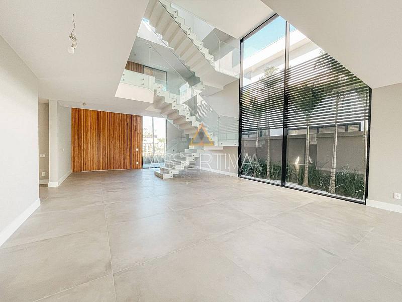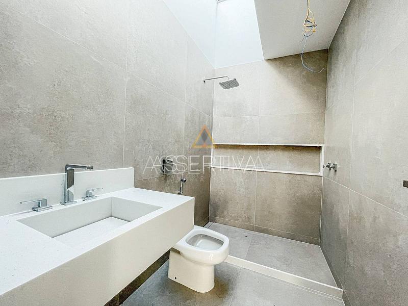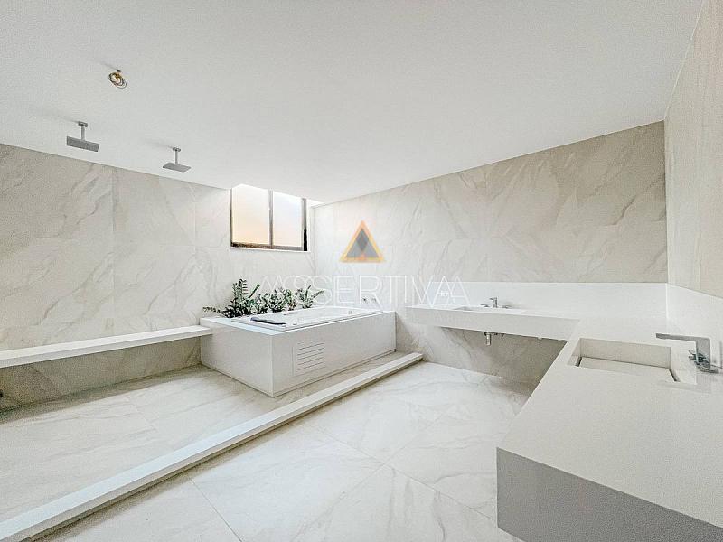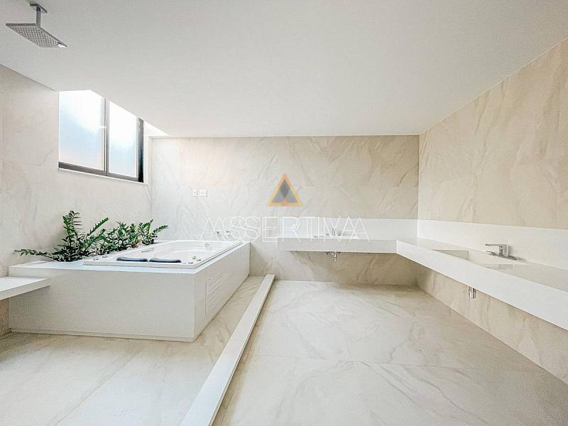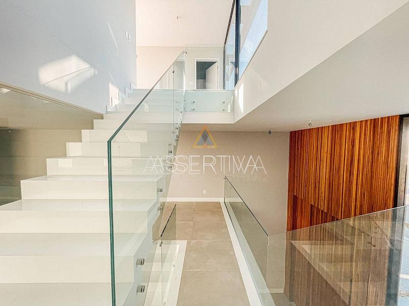 Subindo ao 2° pavimento, um hall íntimo o conduz a três suítes deslumbrantes, cada uma com seu próprio closet privativo. A suíte master é uma verdadeira obra-prima, apresentando um salão de banho luxuoso com uma bancada em L, cuba dupla e uma banheira de hidromassagem dupla. momentos de puro relaxamento na varanda privativa, completando a experiência exclusiva deste andar.