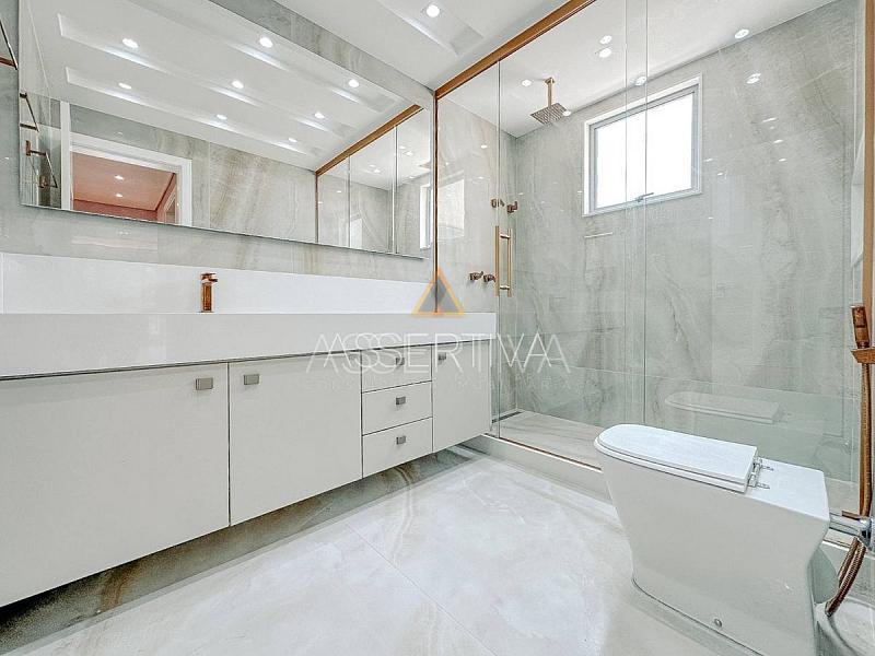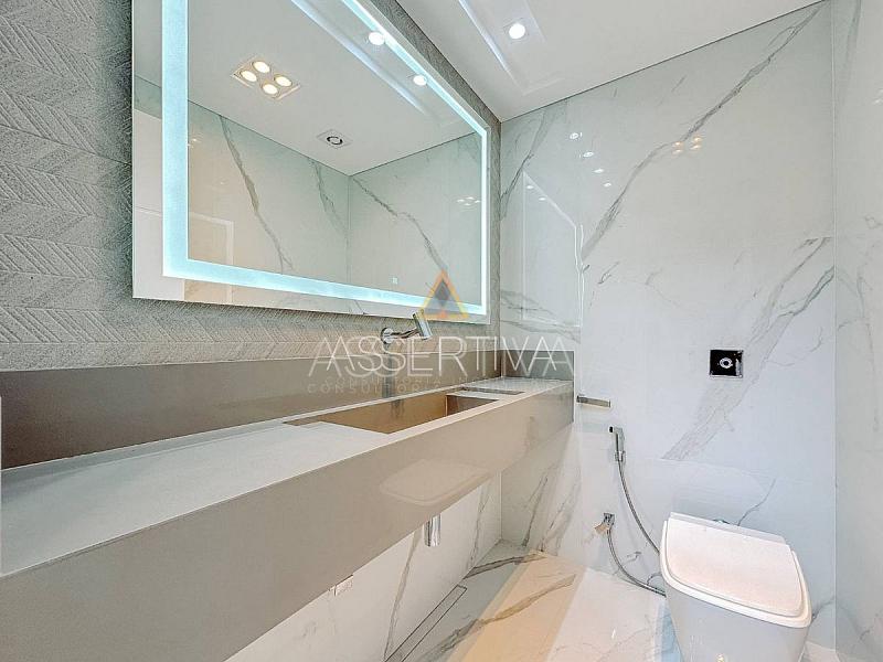 Duas delas contam com closet, enquanto a suíte master é um verdadeiro refúgio, equipada com escritório particular, cuba dupla e hidromassagem relaxante.