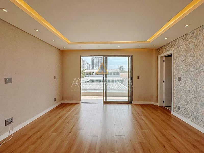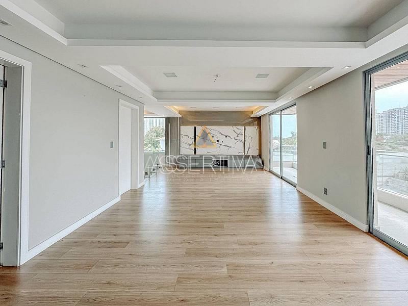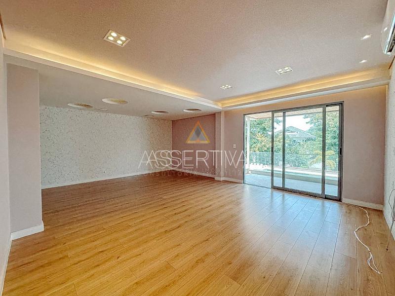 •Ampla sala dividida em quatro ambientes, com acabamentos refinados e iluminação natural abundante.