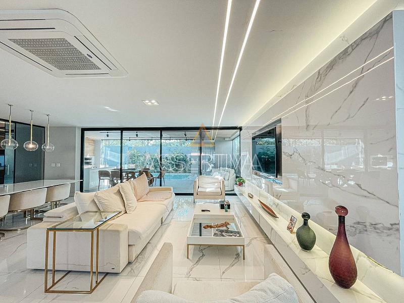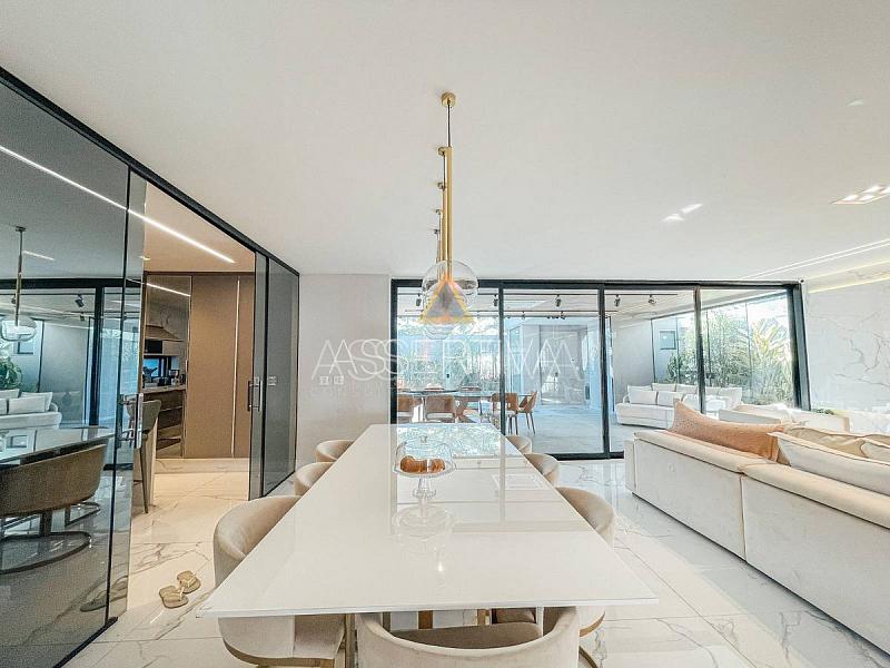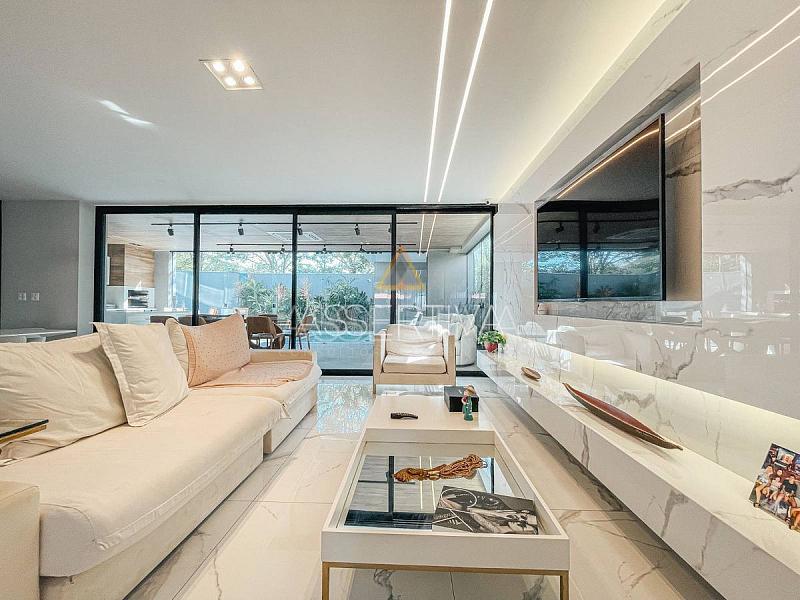 Apresento uma verdadeira joia arquitetônica: esta casa triplex de 489 m² de pura sofisticação e modernidade. Seja bem-vindo a um espaço que redefine o conceito de moradia, onde ambientes integrados proporcionam uma fluidez única. A sala em conceito aberto é um convite à convivência, conectando cada espaço de maneira harmoniosa.