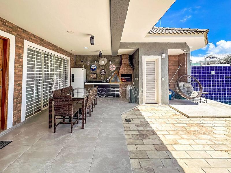 No primeiro pavimento, uma ampla sala em dois ambientes, além de uma sala de jantar que se integra perfeitamente à cozinha espaçosa, equipada para tornar qualquer ocasião especial. A área externa é um verdadeiro convite ao lazer, com uma piscina que conta com uma charmosa cascata e um espaço gourmet ideal para receber amigos e familiares.