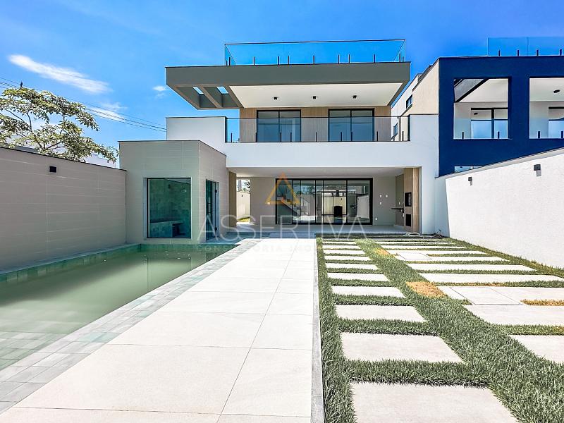 Com uma arquitetura contemporânea e ambientes integrados, a casa conta com uma ampla sala dividida em quatro espaços distintos, perfeita para diferentes momentos do dia. A cozinha em conceito aberto, com ilha central, se conecta harmoniosamente à área gourmet e à sala, criando um ambiente sofisticado e convidativo.