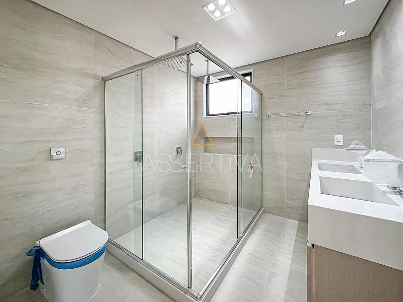 No lazer, uma piscina elegante e uma sauna garantem relaxamento e bem-estar sem precisar sair de casa. As três suítes, todas com closet, oferecem privacidade e conforto, enquanto o terceiro pavimento surpreende com um salão multiuso, ideal para criar um espaço fitness, um home cinema ou até mesmo uma nova suíte.
