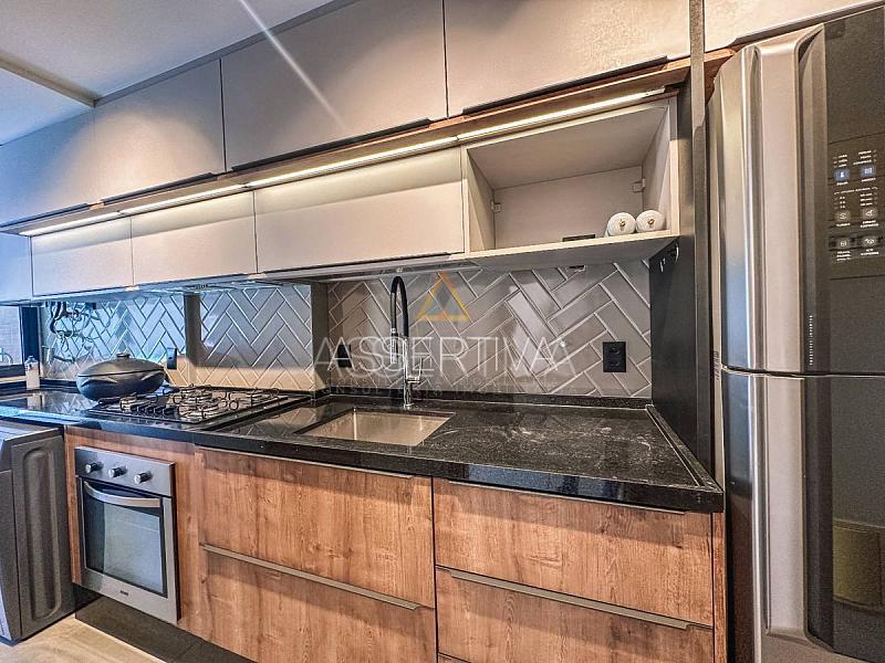 A cozinha é completa e conta com acabamento de excelente qualidade, pronta para o dia a dia ou recepções especiais.